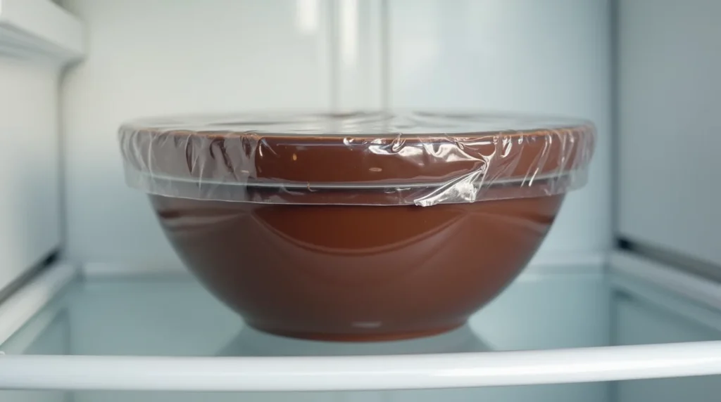 Let the ganache cool to room temperature (about 30 minutes). Cover the bowl with plastic wrap, making sure it touches the surface, and refrigerate for 2–3 hours until firm but pliable.