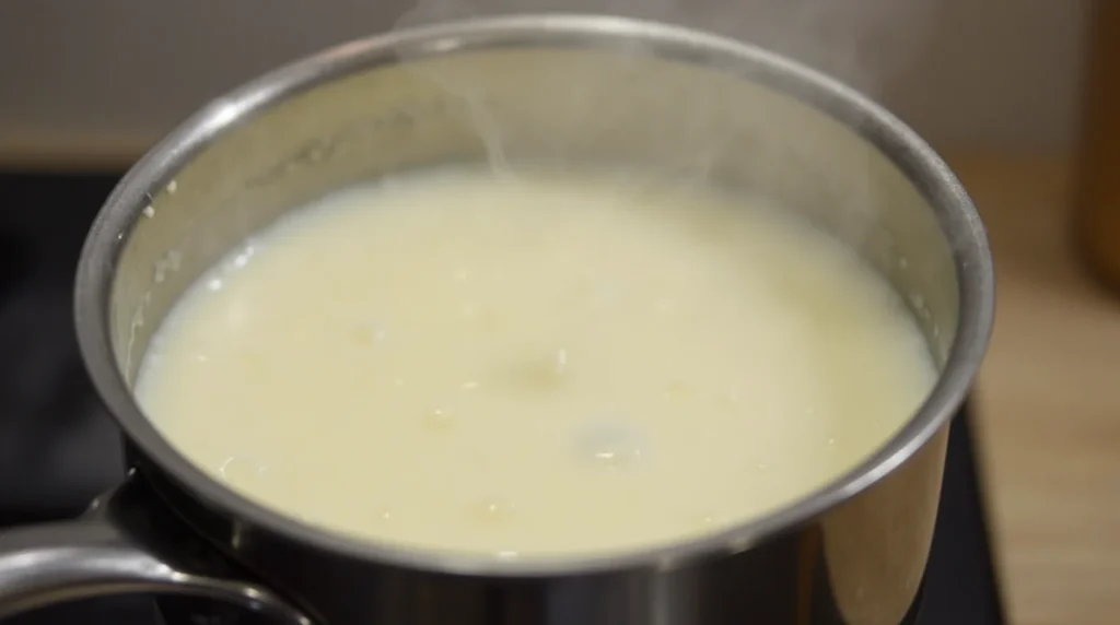 Pour the cream into a small saucepan and heat over medium-low until it just begins to simmer around the edges. Do not let it boil. Remove from heat as soon as you see small bubbles.