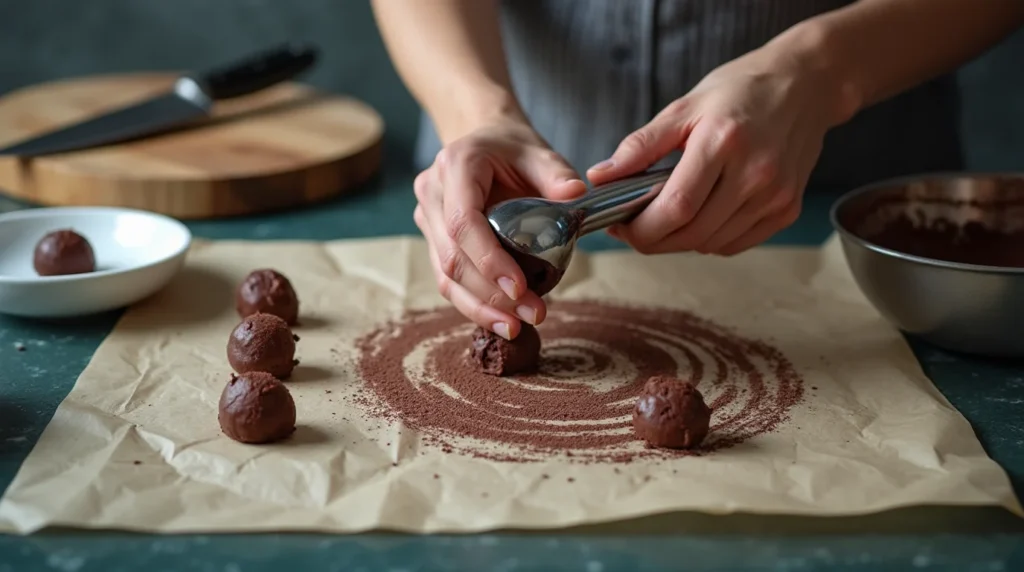 Rolling Tip: If your hands get too warm and the chocolate starts sticking, rinse them under cold water and dry thoroughly before continuing. You can also chill the ganache for 10-15 minutes if it becomes too soft to work with.