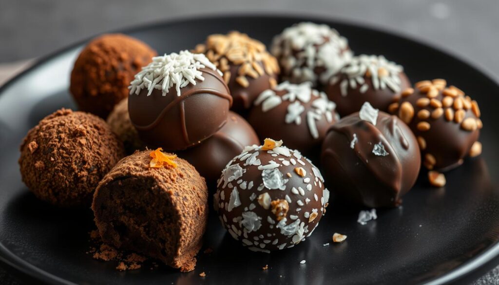 You can also draw inspiration from other truffle and ball recipes to vary the coatings. For example, these Chocolate Raspberry Cheesecake Balls offer a fruity and creamy touch that pairs perfectly with dark chocolate: