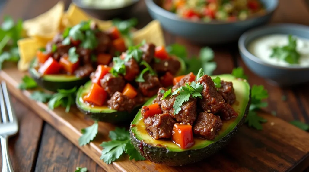 Your honey-glazed beef and pepper stuffed avocado boats are a versatile dish. They can be transformed with the right accompaniments. These low-carb recipes offer endless possibilities for creating a memorable dining experience.
