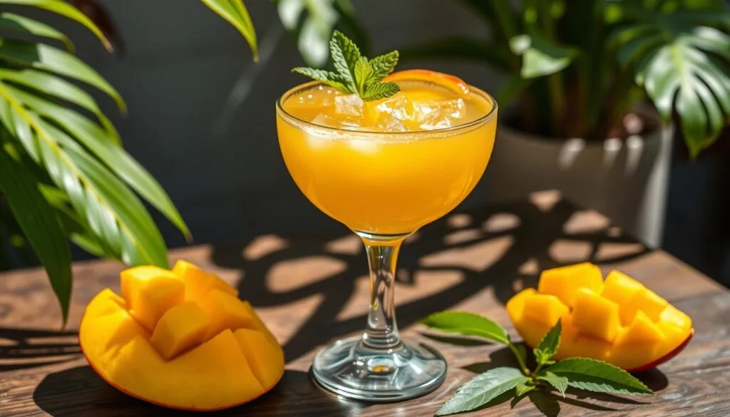 Make your mango margaritas stand out by focusing on presentation. Try different garnishes that boost the look and taste of your drink. These can make your tropical drink recipes even more enjoyable.