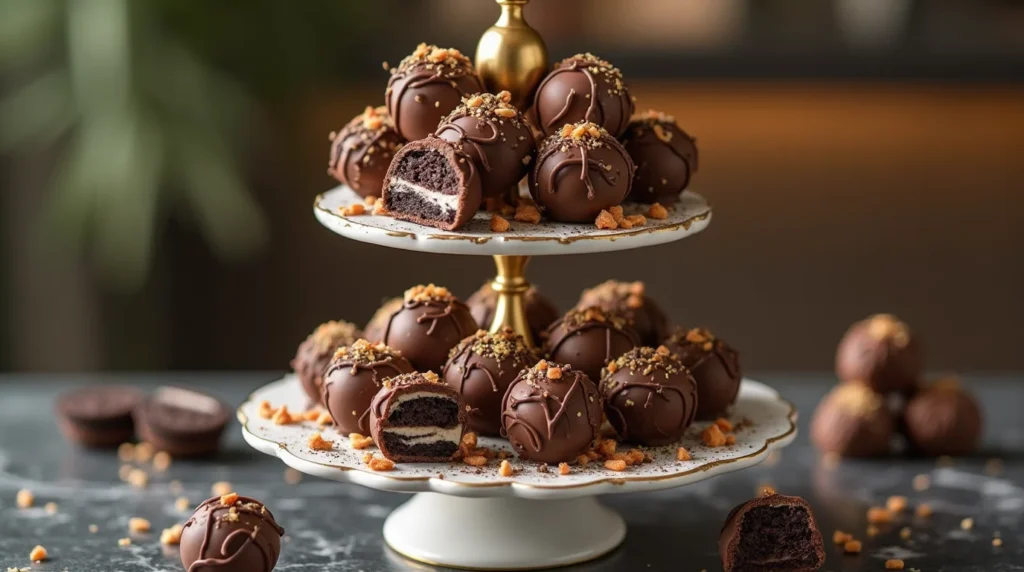 Turning your oreo ball recipe with Reese’s into a stunning dessert centerpiece is easy. These quick no-bake treats can make any gathering special with the right presentation.